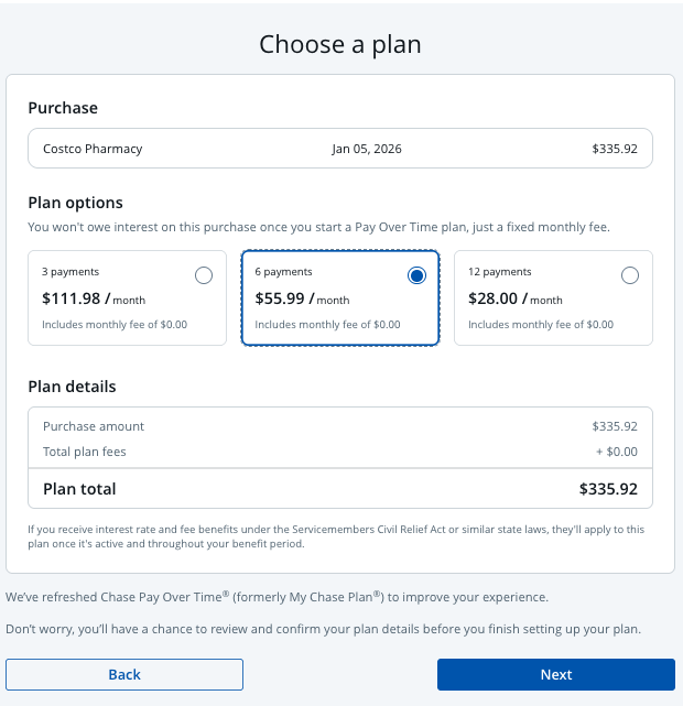 Chase Pay Over Time monthly fee explained