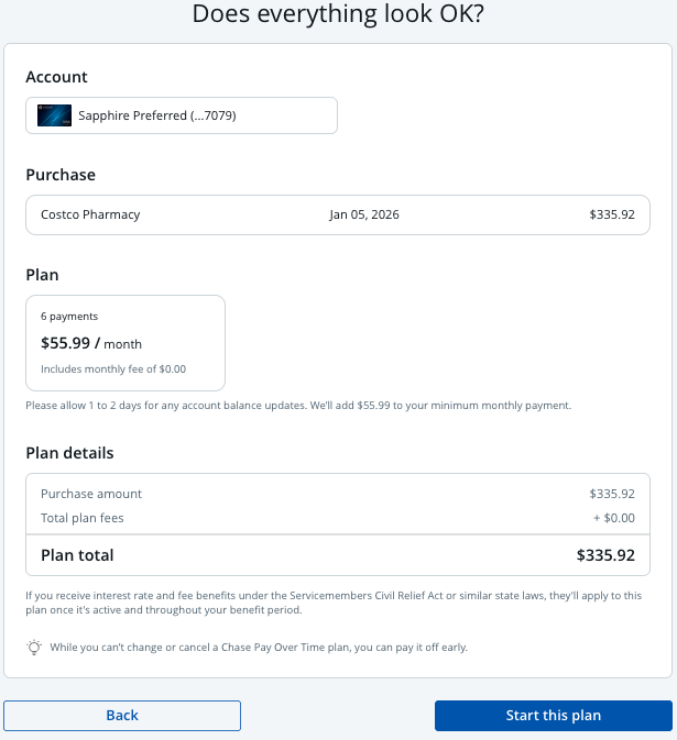 Chase will then take you to a screen that says “Does everything look OK?” and prompt you to click on the “Start this plan” button.