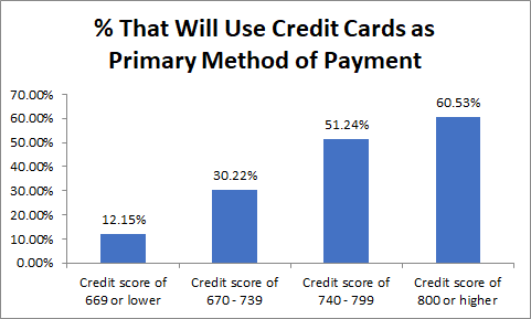 When the survey asked consumers how they planned to pay for most of their holiday gift purchases, people with strong credit scores were most likely to say credit cards would be their primary method of payment.