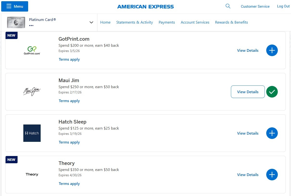 Unlike coupon codes, these offers are automatically applied when you use your eligible card — no promo codes or screenshots required. However, you have to activate each offer or add it to your card before you shop. Every deal also comes with specific rules that must be followed for bonus rewards to apply.